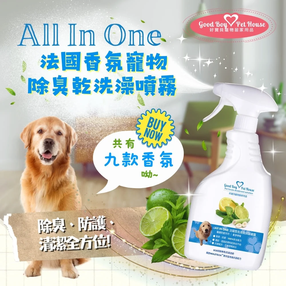 All IN ONE法國香氛寵物除臭防護噴霧 香茅檸檬有淡淡的香茅味,濃度適中, 可以讓家裡充滿清新的味道,讓蚊蟲止步,針對濃厚的臭味也能有效抑制, 效果長達一天。工作一整天,到家還要清潔寵物環境很累嗎? 噴一噴,立刻舒緩空間的嗅覺緊張氣氛,清潔再也不難不煩囉! ◆除臭、防護、清潔一瓶幫你搞定 ◆破壞分解有害因子、搞定頑強寵味 ◆24小時不間斷奈米隱形保護層機制 ◆天然精油成分添加保護毛孩的靈敏嗅覺