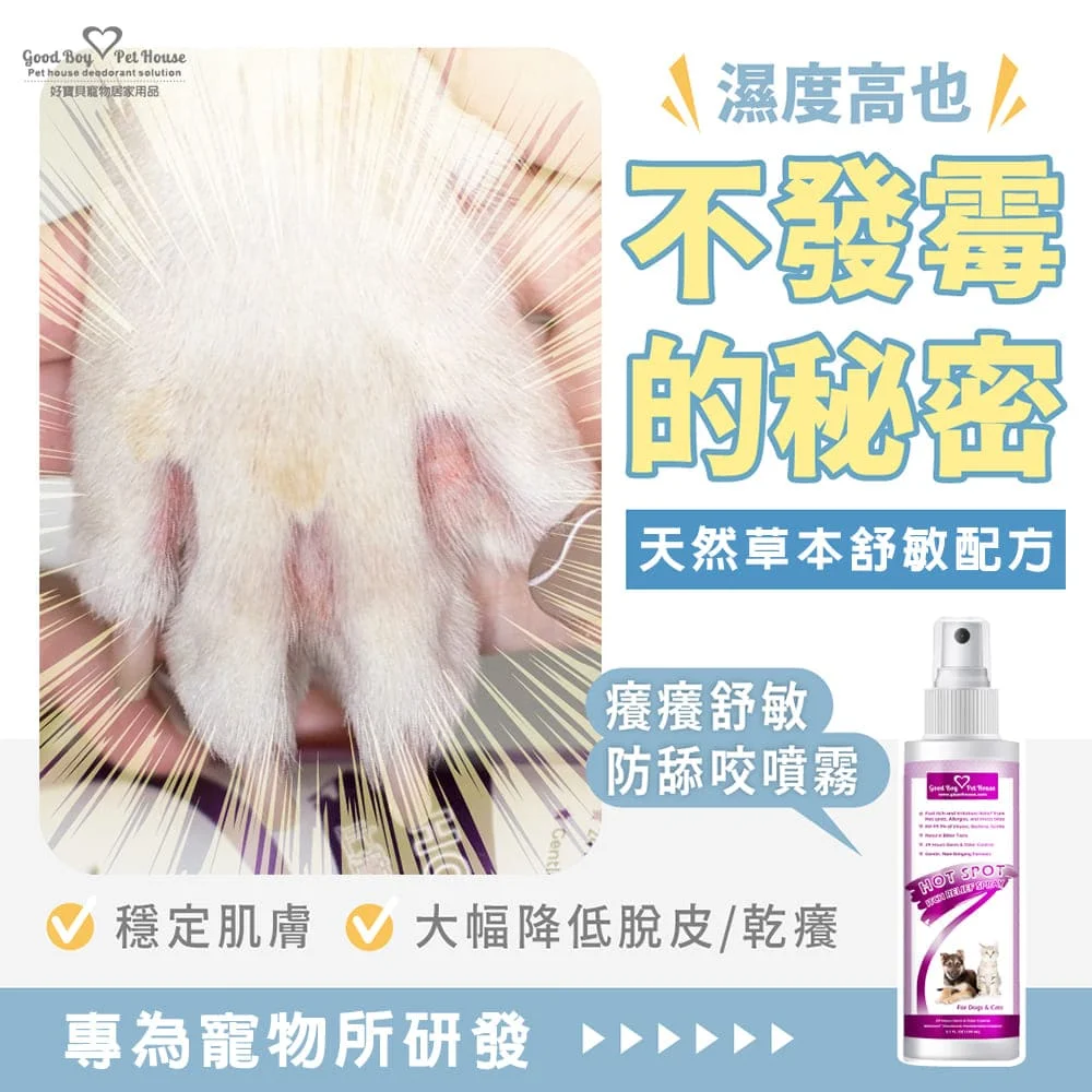 不只是啃腳,好寶貝的癢癢舒敏噴霧產品系列針對皮膚減輕皮毛抓撓還有局部無毛、皮膚屑屑。