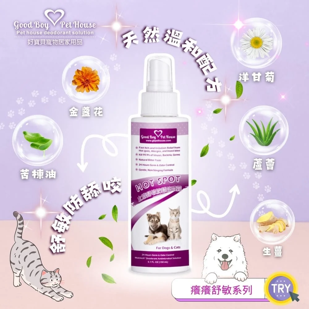 其實是因為好寶貝又不想要毛孩們吃苦,產品的確有效、搭配頭套也好很快,只是毛孩因為不喜歡身上氣味的關係,噴了之後想要除去味道。飼主們的反應我們都能理解,只是我們在毛孩吃苦的同時,我們也很於心不忍。畢竟,產品研發的初心是解決問題肌膚。 希望能在苦味與效果上取得平衡。