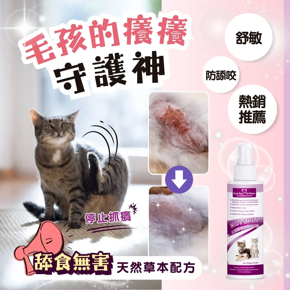 【GBPH好寶貝】癢癢舒敏防舔咬噴霧是一款天然寵物皮膚護理產品,採用純天然植物萃取,溫和不刺激,無抗藥性,可天天使用。