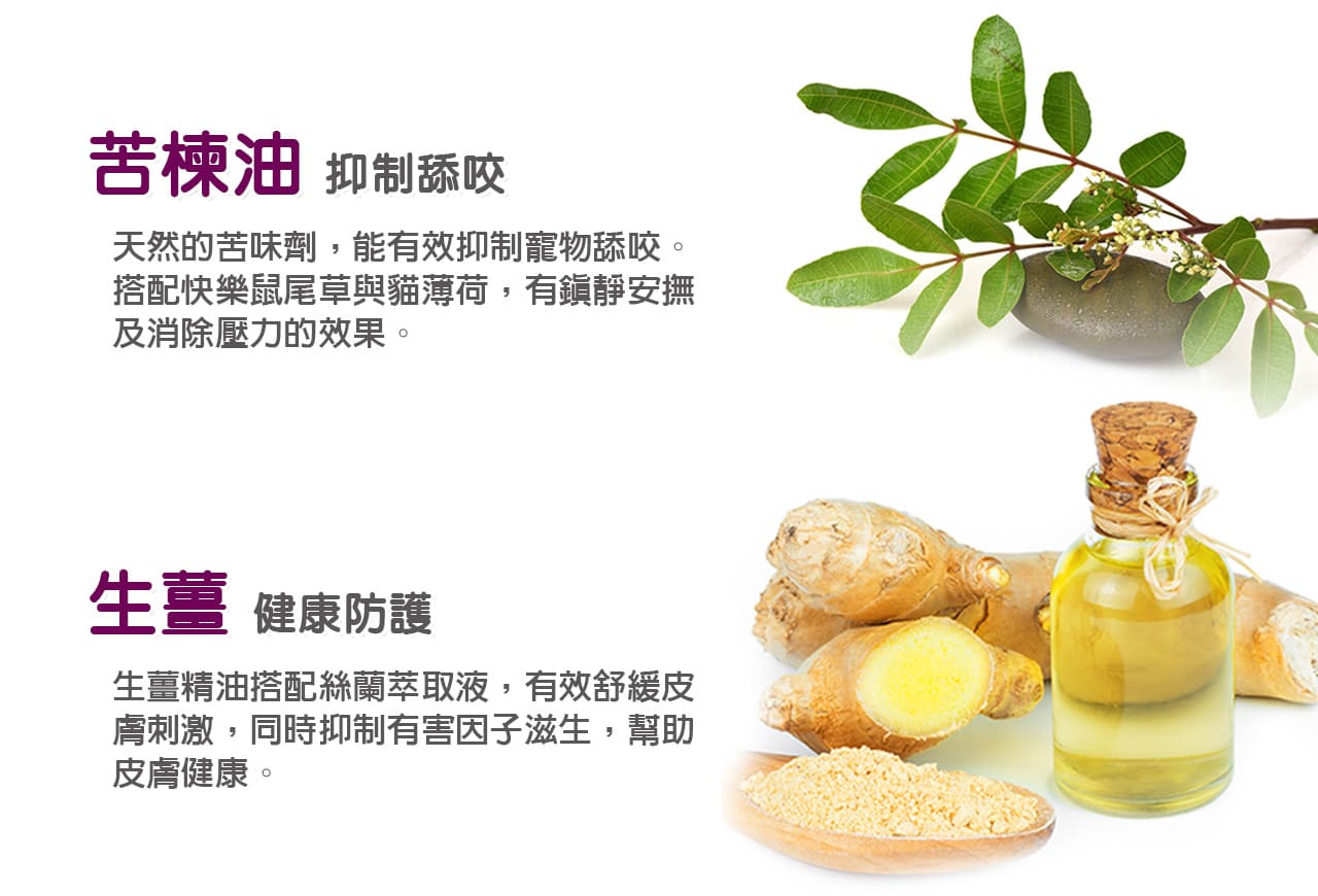 添加苦味劑,為皮膚爭取修護時間,減少舔咬的機會。